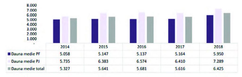 Pe ansamblul întregii piețe, prima medie RCA anualizată a scăzut cu aproximativ 12% în anul 2018 comparativ cu anul precedent, înregistrând valoarea de 612 lei. Totodată, dauna medie RCA plătită pentru vătămări corporale în anul 2018 s-a diminuat comparativ cu anul precedent cu 3,09%, dar a crescut cea pentru daune materiale cu 14,39%. Valoarea medie de reparație, așa cum rezultă aceasta din totalul devizelor/calculațiilor efectuate prin intermediul programului AUDATEX de către unitățile reparatoare auto din România, în perioada 2016 – 2018, a crescut cu 18,7% în intervalul amintit, iar valorile medii ale devizelor de reparație ale unităților reparatoare auto din România pentru Dacia și Volkswagen (cele mai populare mașini de pe străzile din România) au crescut cu 23,42%, respectiv cu 16,17%.