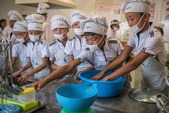 WONSAN, NORTH KOREA – AUGUST 22: Children take part in a cookery lesson at Songdowon International School Children’s Camp on August 22, 2018 in Wonsan, North Korea. Despite ongoing international negotiations aimed at easing tensions on the Korean peninsula, the Democratic People’s Republic of Korea remains the most isolated and secretive nation on earth. Since it’s formation in 1948 the country has been led by the Kim dynasty, a three-generation lineage of North Korean leadership descended from the country’s first leader, Kim Il-sung followed by Kim Jong-il and grandson and current leader, Kim Jong-un. Although major hostilities ceased with the signing of the Armistice in 1953, the two Koreas have remained technically at war and the demilitarised zone along the border continues to be the most fortified border in the world. (Photo by Carl Court/Getty Images)