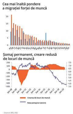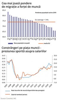 Având în vedere că 21,3% din populația în vârstă de muncă a țării s-a mutat în străinătate, politicile sectorului public vizând redistribuirea veniturilor naționale de la factorul capital către factorul muncă și absența reformelor structurale care să crească gradul de participare a forței de muncă în economie au dus la o serie de constrângeri semnificative pe piața forței de muncă, explică economistul-șef al ING România, într-un recent studiu.