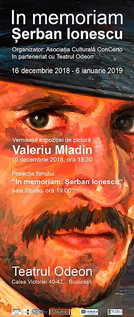 Acum, Valeriu Mladin şi-a ales alt „model”: pe regretatul Şerban Ionescu (1950-2012), faimos din tinereţe pentru interpretarea rolului titular din Blestemul pământului, blestemul iubirii, ecranizarea, regizată de Mircea Mureşan, a lui Ion, romanul lui Liviu Rebreanu, cu o carieră prodigioasă şi-n teatru, şi-n cinematografie. Apropiat al cuplului de actori Magda Catone-Şerban Ionescu, Mladin l-a pictat şi l-a desenat pe acesta din urmă într-un ciclu portretistic din care a expus primele tablouri în 2017, când s-au împlinit 5 ani de la plecarea prietenului, într-un eveniment evocator de la Muzeul Naţional al Literaturii Române, apoi în septembrie 2018, la Sala Dalles, în cadrul unui mini-festival de teatru şi film consacrat actorului. După completarea seriei până la un total de 4 picturi mari şi 13 desene mai mici, dar toate la scară mai mare de 1/1, proiectul a fost itinerat, la trecerea din 2018 în 2019, în noiembrie-decembrie-ianuarie, într-o „caravană” In memoriam Şerban Ionescu, în trei teatre pe ale căror scene a jucat mult, şi anume la Comedie, în holul mare, unde au putut fi amplasate doar tablourile, la Odeon, unde şi-au găsit locul, în foaierul Sălii Studio, toate 4 plus 13 lucrări, şi la Naţional, pe peretele lateral al Sălii Media şi pe un stativ, în alinieri de 4 plus 12 imagini (vernisajele: 24 noiembrie, 16 decembrie, 9 ianuarie).