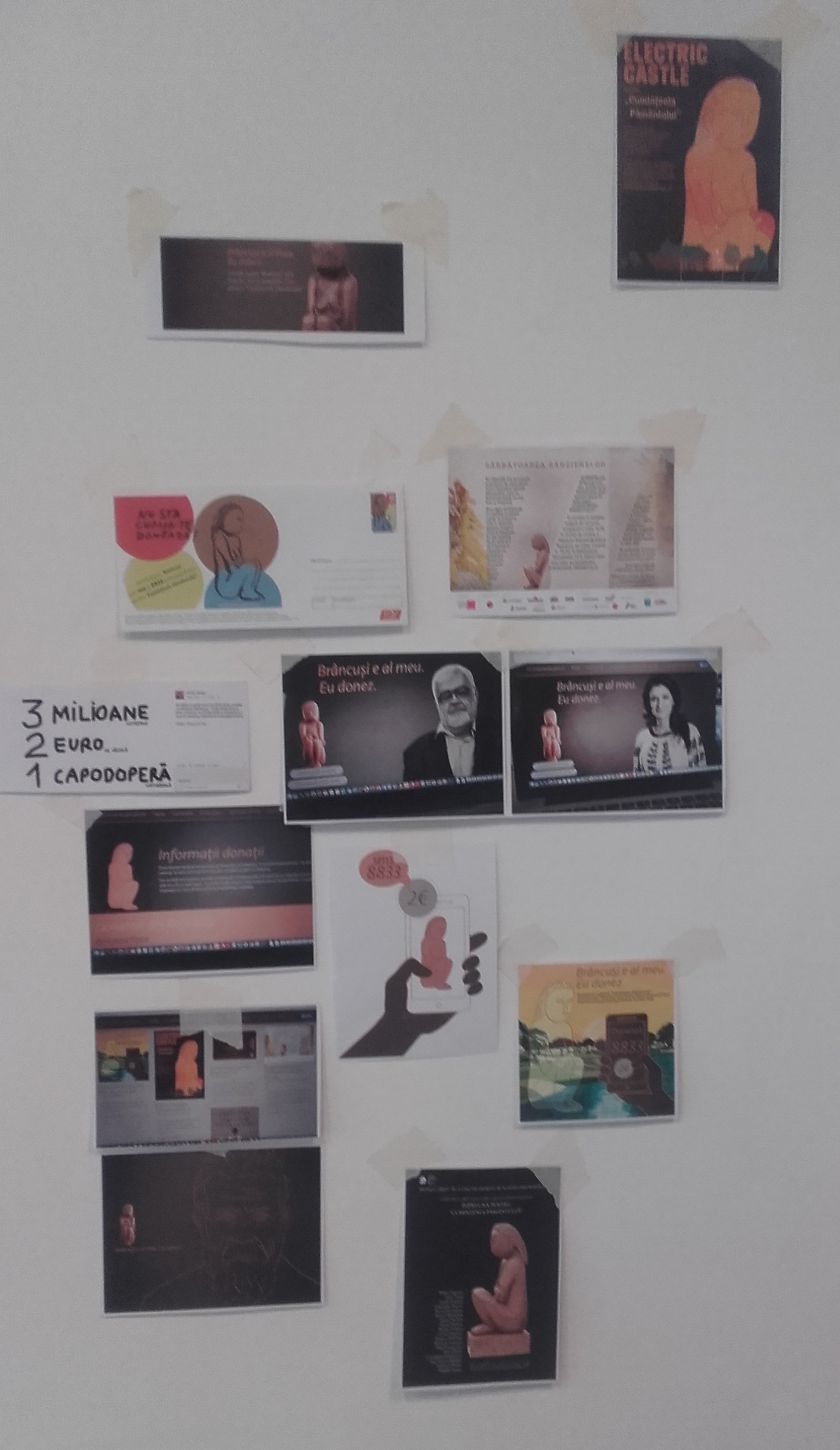 Nu reiau acum întreaga poveste: campania publică, apelurile multor figuri cunoscute, filmulețe, cântece, spoturi de televiziune, panouri publicitare în orașele patriei, dezbateri în toate tipurile de mass-media, pledoarii, păreri, controverse (nu cumva sculptura nu trebuia retrocedată?!; merită atâția bani?!; ș.a.m.d.). Doar amănuntele necesare acum: Muzeul Național de Artă al României din Palatul Regal a organizat în lunile mai-iunie 2016 o expoziție de documentare și de contextualizare a lucrării, sub titlul Cumințenia pământului. Aceasta nu este o piatră, cu contribuția unor critici și istorici plastici și a unor artiști contemporani care au preluat sugestii brâncușiene. Dan Perjovschi și-a asumat atunci rolul de „agent de donații”, strângând de la vizitatori bani pentru Cumințenie…: 1.514 lei, virați cu chitanță într-unul dintre conturile campaniei.