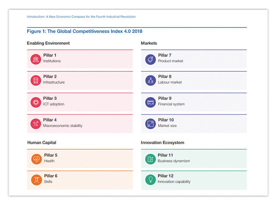 Lucrurile par însă să se degradeze în ceea ce privește România – cel puțin, dacă ne uităm la pilonii care sunt sub controlul guvernului: instituții, infrastructura, adoptarea tehnologiei informației, stabilitatea macroeconomică. În plus, e un clasament dinamic, dacă alte țări fac progrese, iar noi stăm pe loc, înseamnă că scădem.