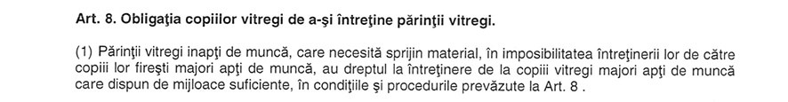 Textul Times New Roman „prevede” că „Obligațiile se referă nu numai la părinții naturali, ci și la părinții vitregi, bunici și străbunici. Legea prevede, pe de altă parte, că și bunicii sunt obligați să întrețină „nepoţii minori, care necesită sprijin material, aflaţi în imposibilitatea întreţinerii lor de către părinţi”. Cele două prevederi ale legii Times New Roman se regăsesc la articolele 8, respectiv 6, din proiectul de lege al PSD proaspăt retras.