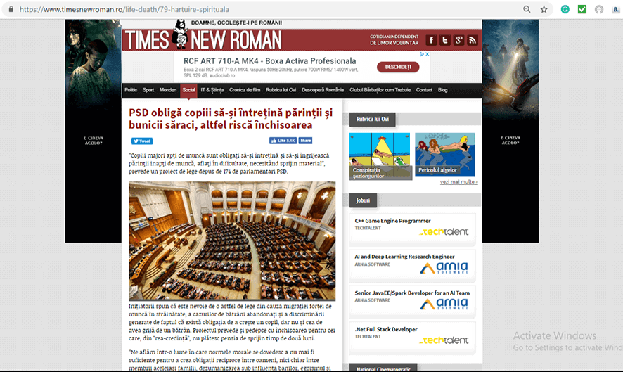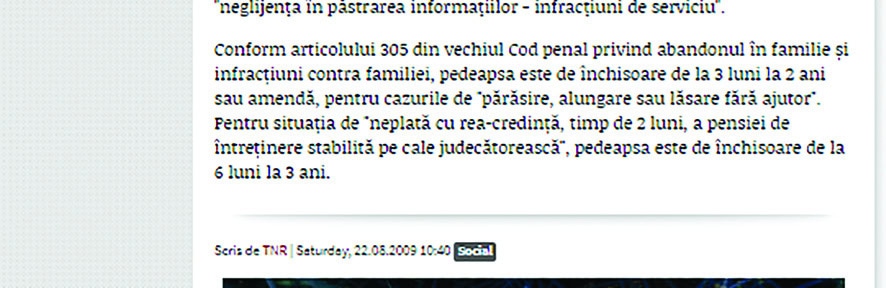 Articolul, scris în 22 august 2009, se intitula „PSD obligă copiii să-și întrețină părinții și bunicii săraci, altfel riscă închisoarea” și în intro-ul respectiv se arăta „Copiii majori apţi de muncă sunt obligaţi să-şi întreţină şi să-şi îngrijească părinţii inapţi de muncă, aflaţi în dificultate, necesitând sprijin material”, prevede un proiect de lege depus de 174 de parlamentari PSD”.